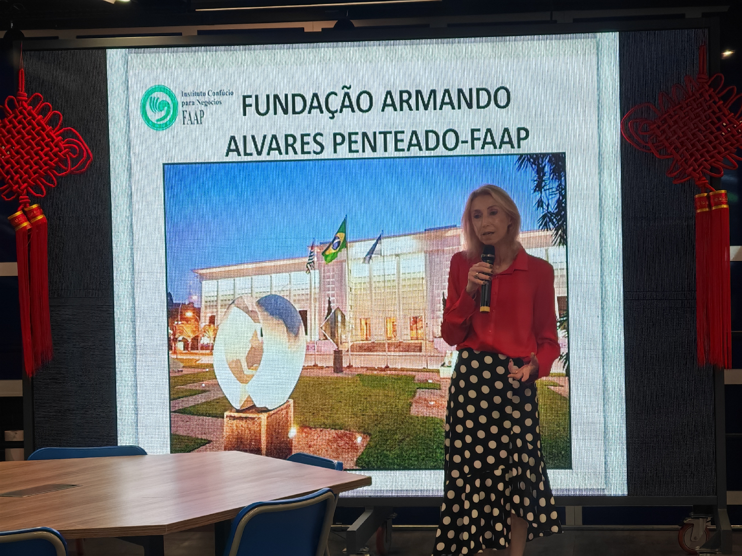 FAAP大学国际关系处长、商务孔子学院巴方院长卢尔德(Lourdes)与中方院长朱晓姝分别发言,并共同介绍了孔子学院在巴西的发展情况及其主要职能,重点阐述了学院在华文教育、语言培训、文化交流以及服务中巴教育与商业合作方面所发挥的积极作用。