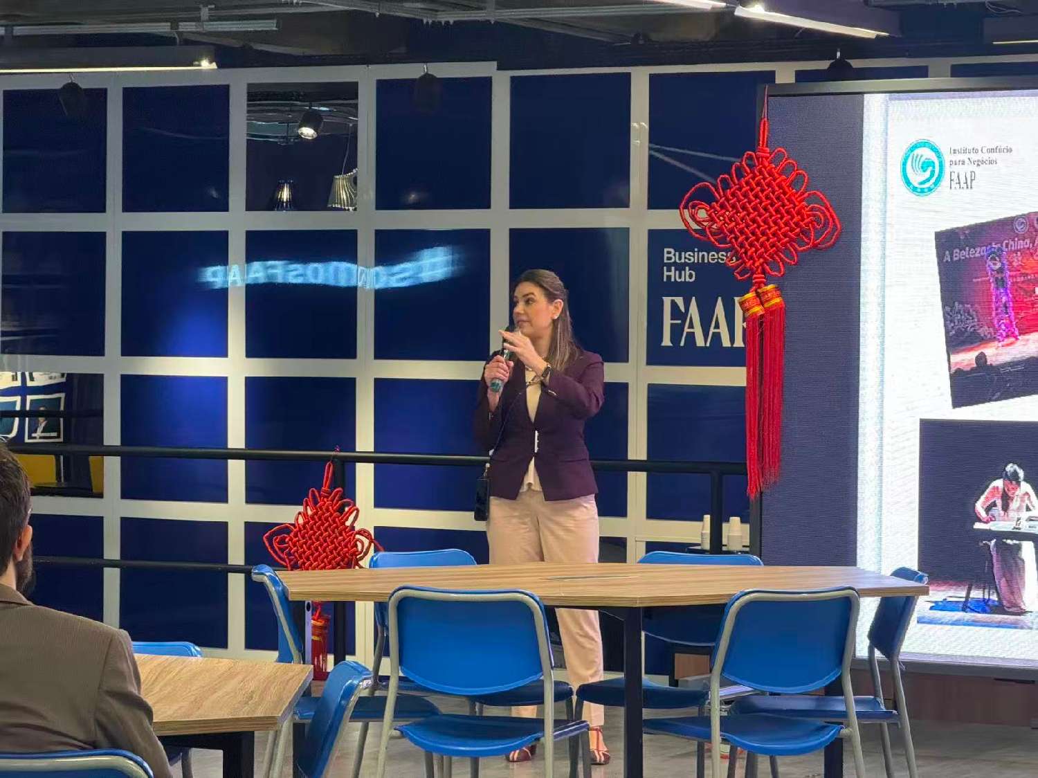 圣保罗市国际关系局局长安吉拉·甘德拉(Angela Gandra)出席活动并致辞。她在致辞中表示,中巴双方需要有深度和可持续性的国际合作,不应仅停留在经贸往来和经济层面,更应建立在扎实的人文基础之上。她指出,学术合作、文化交流以及语言互鉴,是不同国家增进相互理解、消除认知隔阂的重要途径。只有通过教育体系的长期投入,才能培养具备跨文化理解能力和国际视野的人才,为双边合作提供持续动力。