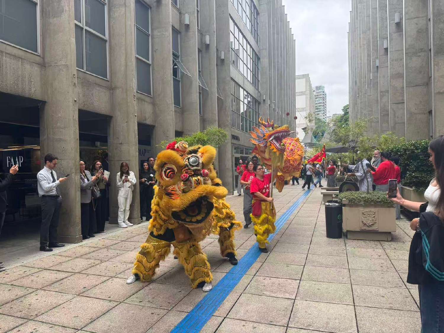 交流会结束后,与会嘉宾一同观看了舞龙舞狮表演。铿锵的锣鼓声与灵动的舞姿,将现场气氛推向高潮,也让不少巴西嘉宾近距离感受到中国传统文化的独特魅力。随后,嘉宾们在轻松友好的氛围中继续交流,就未来在教育项目、人才培养及企业合作等方面的可能性进行深入探讨。
